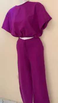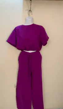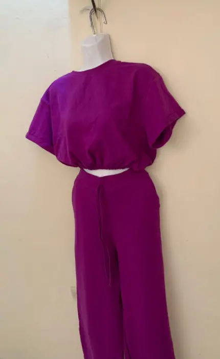 Conjunto morado. Muy bonito es unitalla es ajustable al cuerpo es totalmente nuevo la tela súper agradable