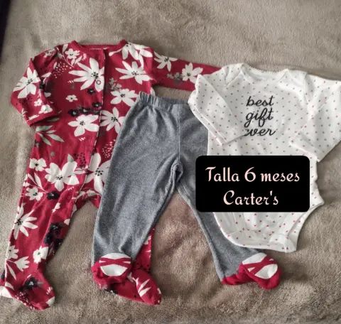 Consta de 3 piezas, marca Carter's para bebés de 6 meses. Alta calidad!!