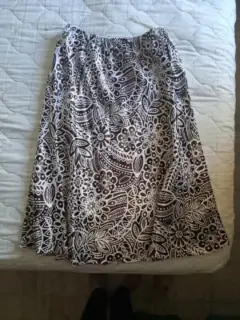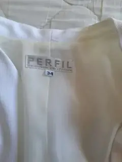 Este cuenta con 2 piezas, un saco blanco, con forro y botones, y la falda de resorte, en color café con estampado de flores, es ideal para una fiesta o para ir a trabajar, el saco es de manga larga, la falda cuenta con un fondo integrado, la falda da un largo abajo de la rodilla, esta en muy buen estado, una sola puesta.