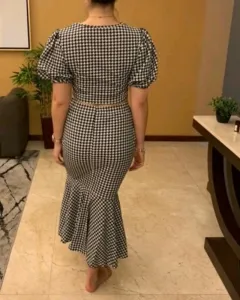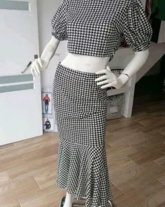 Conjunto pata de gallo. Hermoso conjunto se crop top con falda tipo sirena entallado muy bonito, manga bullona elastico en cintura