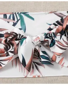 Conjunto Playero. SHEIN VCAY Outfit de dos piezas Lazo delantero Tropical Bohemio.Talla LShort:Largo: 34.2cmContorno Cintura: 74.5 CMContorno cadera: 119cmMuslo: 78cmTop:Largo: 37.5cmPecho: 154cm