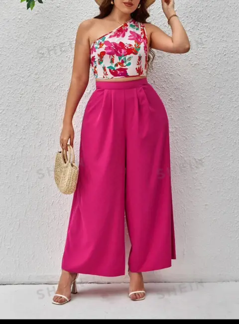 Coordinado 2 piezas color fiucsa / blanco. Precioso conjunto de 2 piezas color rosa fiucsa con blanco, talla XL, marca SHEIN, nuevo, ideal para una fiesta de día.