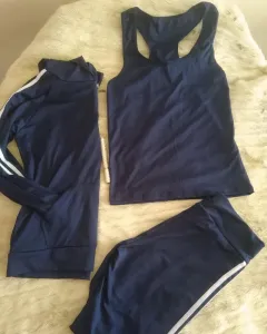 Coordinado Deportivo 3 Piezas. Conjunto deportivo de Lycra/AlgodónTalla Grande/Extra GrandeColor Azul Oscuro/MarinoPantsSudaderaCamiseta deportivaStretch