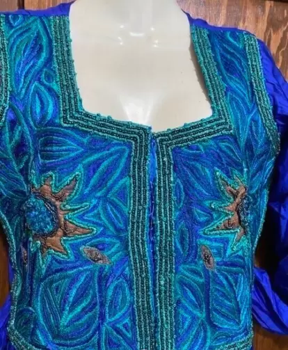 Elegante vestido Hindu. Precioso vestido largo de fiesta hindú de dos piezas, en excelentes condiciones, sin detalle bordado con pedrería color azul rey , talla S-M, precio negociable