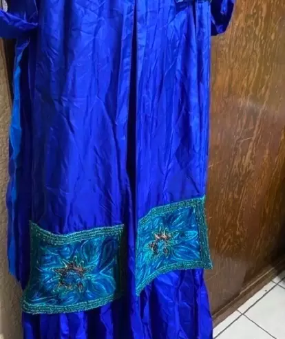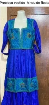 Precioso vestido largo de fiesta hindú de dos piezas, en excelentes condiciones, sin detalle bordado con pedrería color azul rey , talla S-M, precio negociable
