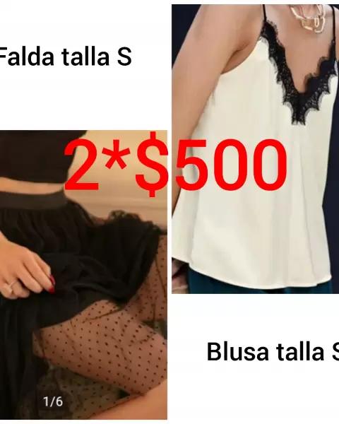 Hermosa falda y blusa pueden usarse juntas o por separado ambas prendas nuevas y sin detalles. Talla S quedan a 5-7 incluso podrían quedar a 9 ya que la falda tiene resorte