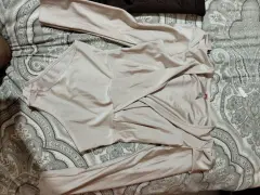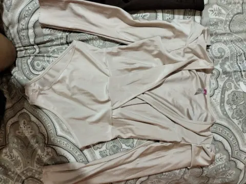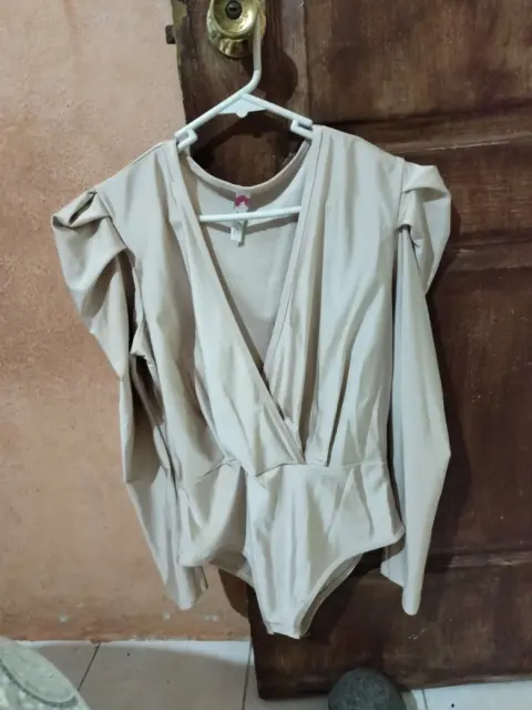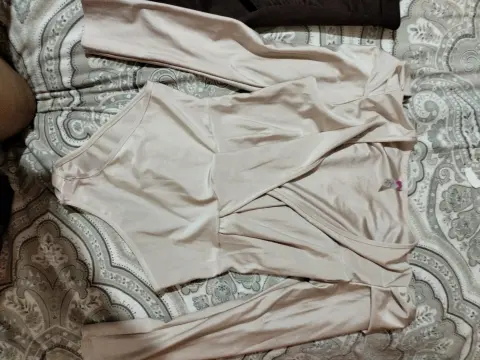 La falda es corta, de gamuza, talla grande, es strech. La pantiblusa es talla grande también. Los compré por separado para armar un conjunto. Sin detalles. Nunca se usaron.