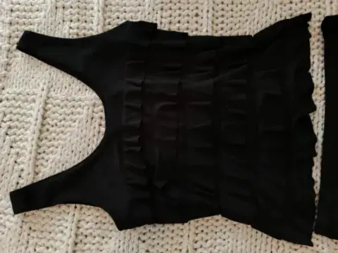 Fantástico outfit en negro. Detalles en olanes lucen super femenina y sexy. Talla G