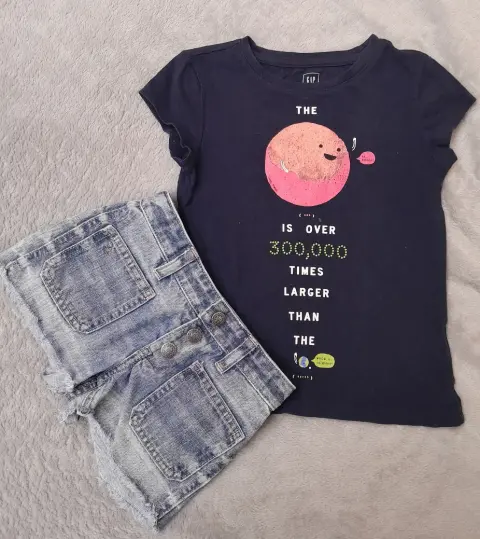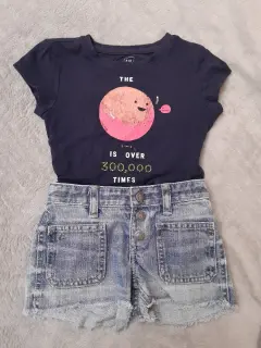 Jeans Ralph Lauren y blusa Gap 4/5. Hermoso short de mezclila Ralph Lauren, bolsas al frente, atrás y botones, talla 4/5, hermosa playera azul marino Gap, talla 4/5, color firme, los dos sin detalles y se van juntos.