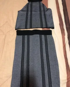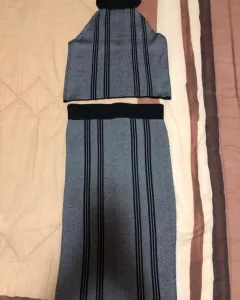Juego de falda y bluza. Conjunto de bluza y falda elástica color gris y negro