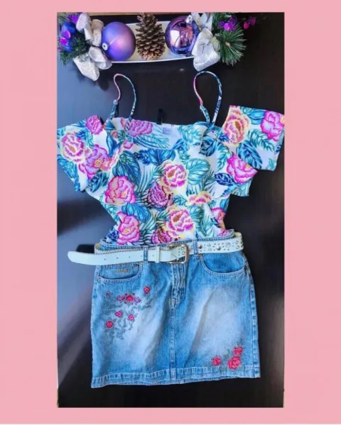 Outfit 3 PIEZAS DE DIFERNTES MARCAS. *Blusita Campesina Flores Marca H&M talla Mediana ? *Cinturon diamante color azul talla Chica/Mediana *Faldita Flores marca Ralph talla 5/7❤️ :) te dejo un cupon de descuento en tu primer compra: guadalupe-ledesma-valadezsySlv