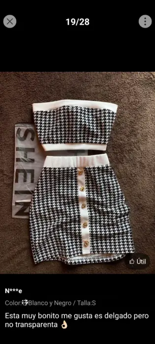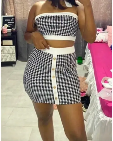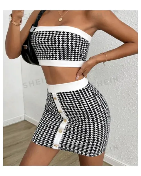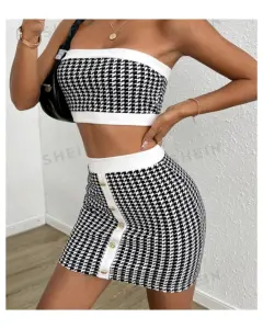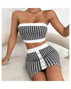 SHEIN Privé con estampado de pata de gallo Top tubo corto & Set faldaTalla M y L (Único)