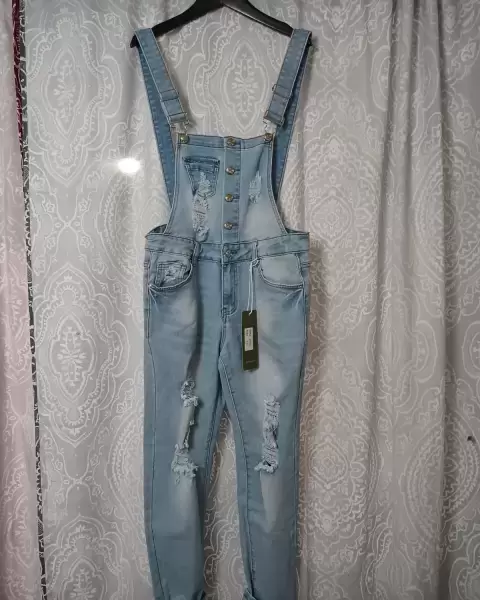 Lindo overol de mezclilla azul claroTalla S, la mezclilla se estira , nuevo y con etiqueta