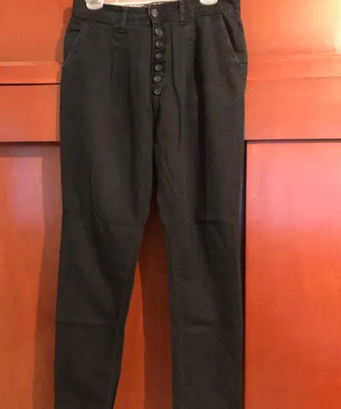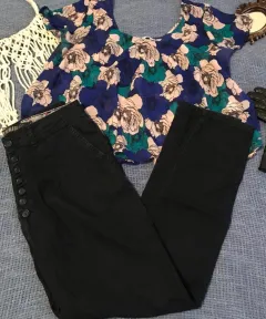 Blusa de gasa azul con verde y cafe, talla L, Lefties. Panntalon tiro alto colo azul marino, talla M, Pull&Bear.