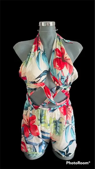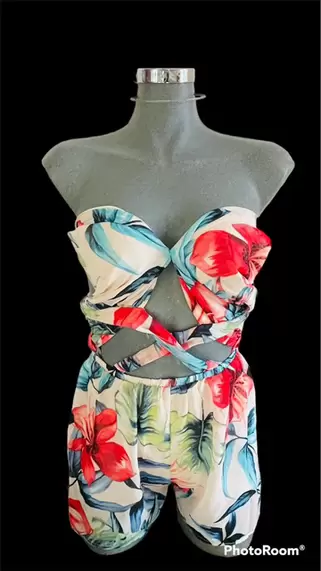 Palatzo de short floreado. Talla s , solo una puesta. Tiene cierre atrás y gancho de ajuste.