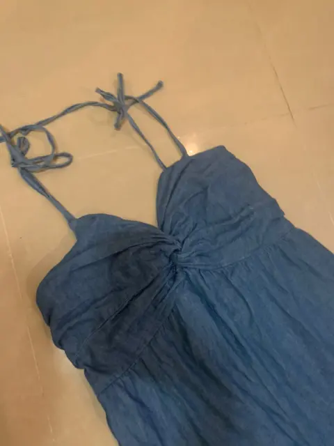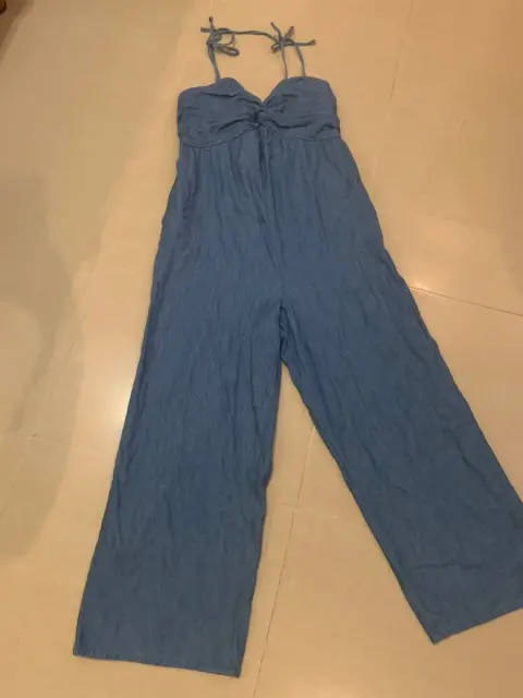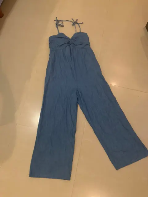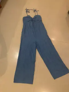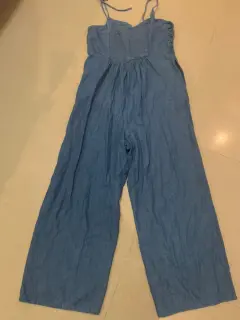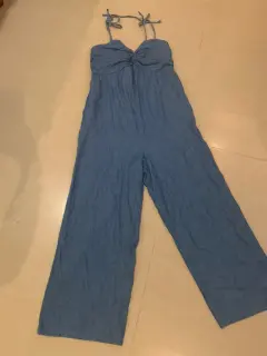 PantalónCompleto de telaFresca color azul mezclilla talla L nuevo tirantes de misma tela