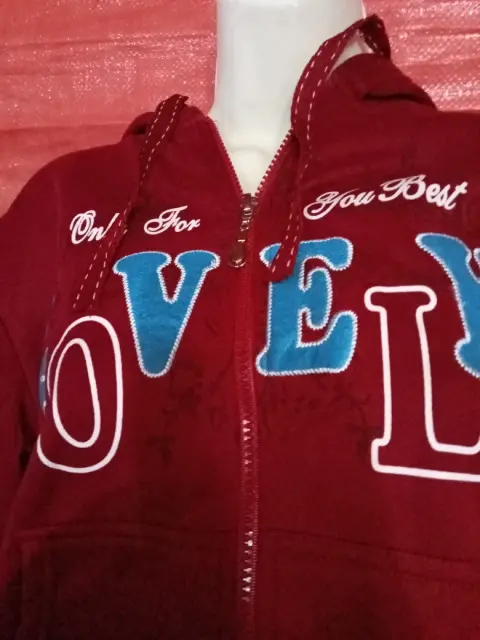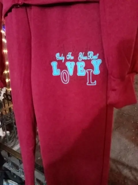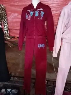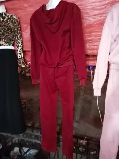 Pants de dama color tinto con letras, gorro, de cierre la sudadera, talla m pero viene reducida.