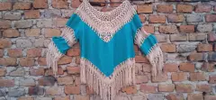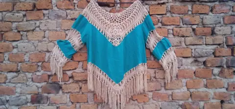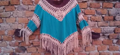 Poncho Tejido Turquesa + Blusa Café (2 x 1)