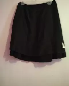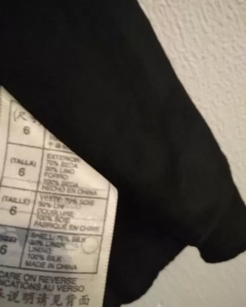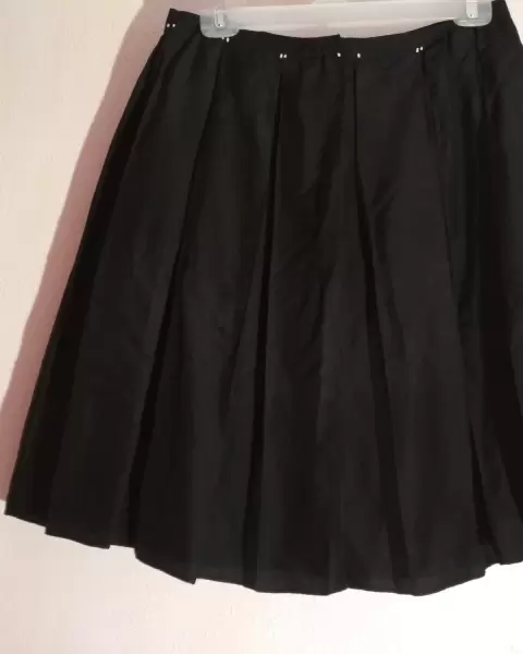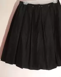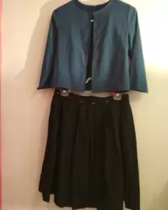 1 falda37cm cintura59largoCon forroExterior 70% seda 30% lino , forro 100% sedaTipo tableada ( no muy marcada)Color negro tipo campana1 saco talla chica a zul medio strech tela de saco a la cintura