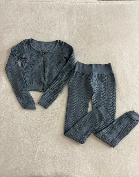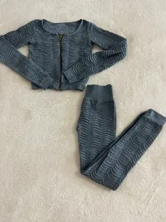 Conjunto deportivo de legging y sudadera con textura, el pantalón tiene plisado en la parte de atrás