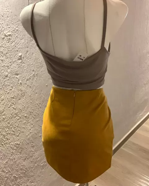 Top y falda Conjunto. Conjunto Top crop sexy Unitalla Color: GrisYFalda gamuzaColor: AmarilloUnitalla