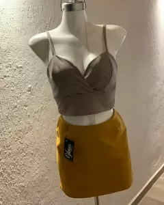 Conjunto Top crop sexy Unitalla Color: GrisYFalda gamuzaColor: AmarilloUnitalla