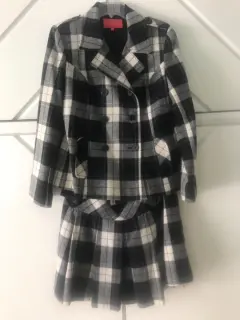 Traje a cuadros. Conjunto falda saco, muy cómodo, falda amplia tableada, saco cruzado
