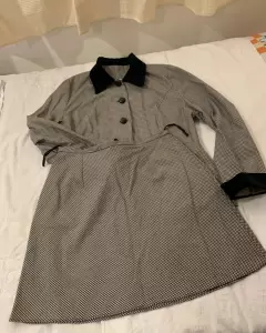 Traje de vestir casual blanco y negro. Traje estilo sastre moderno Minifalda Bleizee con botones forrados de terciopelo, puños y cuello igual de terciopeloMuy elegante y coqueto Moderno para ir a la oficina o fiesta casual Excelente estado 👌