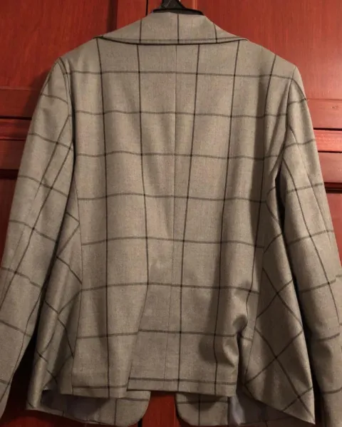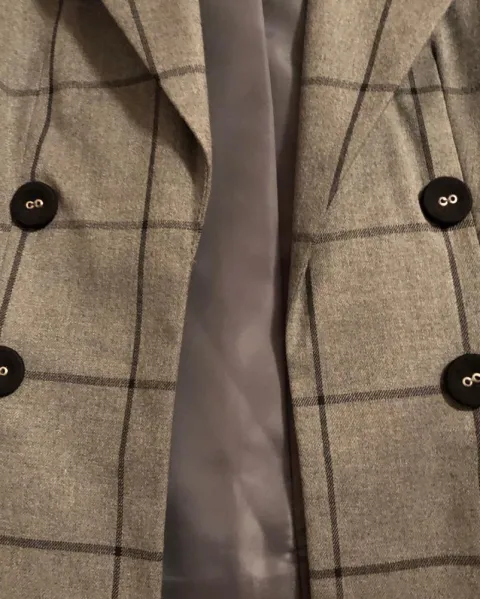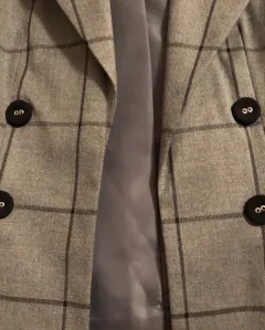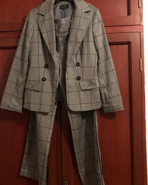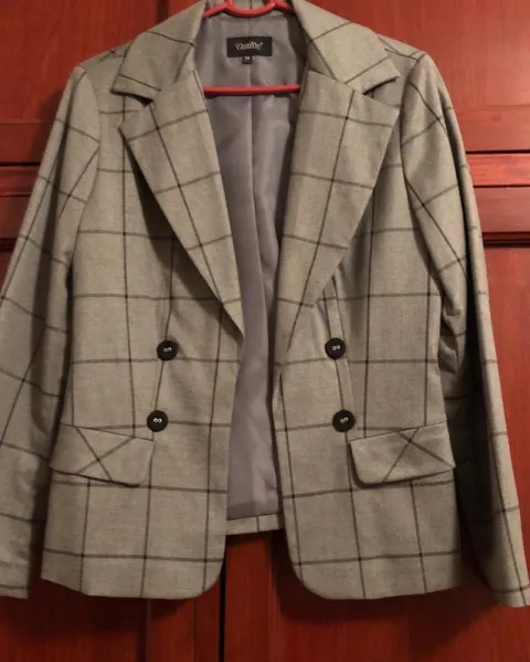 Traje saco y pantalón a cuadros. Excelente conjunto talla 34, saco con forro y bolsas, pantalón con bolsas, piernas anchas y aplicación en los lados en negro