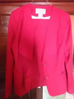 Traje sastre color rojo quemado para dama. Tela poliéster, saco con forro, (pantalón no), talla 11, viene un poco reducido, NUEVO.