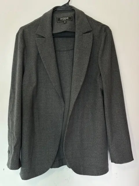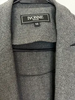 Traje sastre gris Oxford. Traje sastre gris Oxford con textura marca Ivonne. Saco talla 12 medidas de axila a axila 49.5 cm largo 70 cm Pantalón talla 8 medida de frente cintura 39 cm cadera 47 cm Largo 90 cm