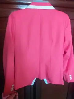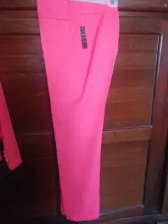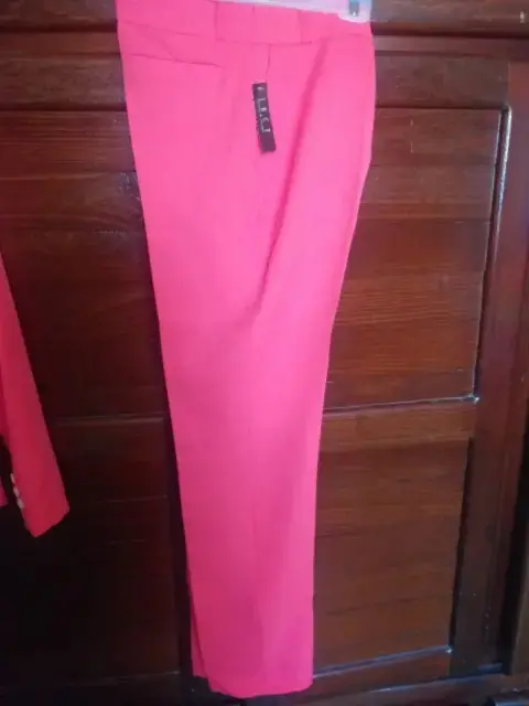 Tarjeta sastre de color salmón NUEVO. La tela es poliéster. La talla es 11, viene justo. El saco trae forro el pantalón no.