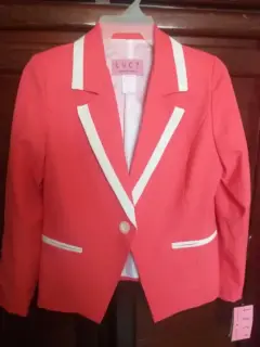 Traje sastre nuevo. Tarjeta sastre de color salmón NUEVO. La tela es poliéster. La talla es 11, viene justo. El saco trae forro el pantalón no.