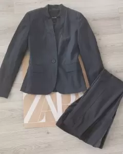 Traje tipo sastre Zara. Bonito traje de dama color azul tirando a gris, pantalón con abertura en parte inefior, en perfecto estado talla s