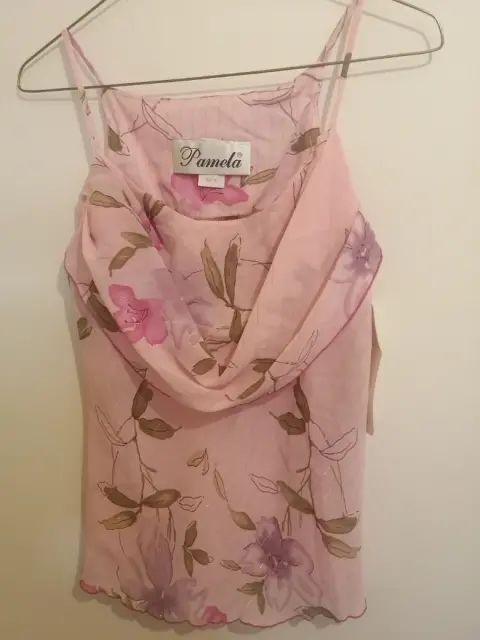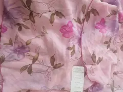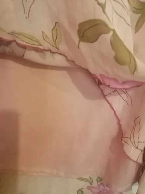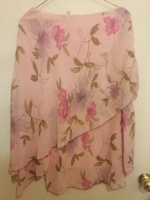 Vestido de dos piezas floreado con fondo en color rosa, la falta tiene volantes, talla 30, nuevo con etiqueta sin detalles