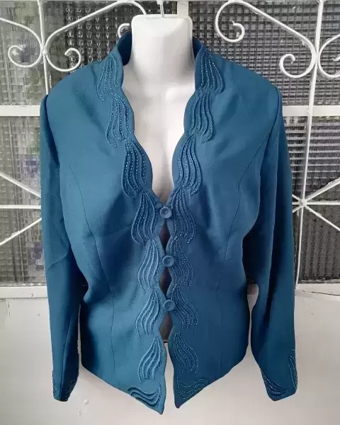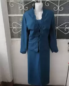 Conjunto de 2 piezas, vestido con saco.Ideal para una fiesta de graduación, boda, XV años, etc.Talla: 11Color: Cobalto oscuroMedidas:~Vestido: *De axila a axila 49 cm*Largo desde los hombros 120cm~Saco: *De axila a axila 52 cm*Largo desde los hombros 59 cmSaco con adorno en el centro y en las mangas.Detalle: Tiene un jalón el vestido de la parte de la espalda, 5ta fotoCupón: JanMoPBn0H