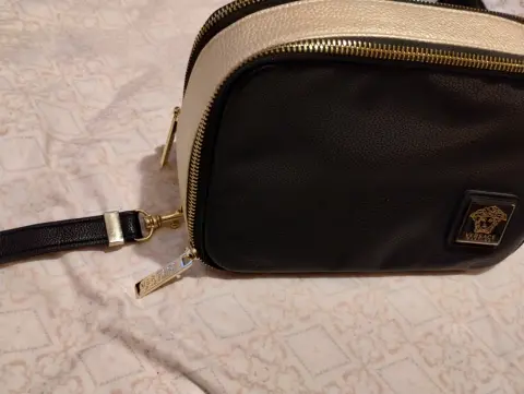 Bonito bolso/ Cosmetiquera Versace color negro y dorado seminueva sin detalles. Medidas 25cm x 18cm bastante amplia y excelentes condiciones