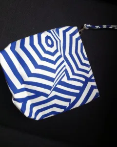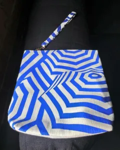 ❤️COSMETIQUERA FANGS. Cosmetiquera en rayas color azul rey con beige y es de tela fina y está forrada por dentro.Nueva sin etiquetaSus medidas son:Alto 24 cmAncho 25 cmBase 6 cm