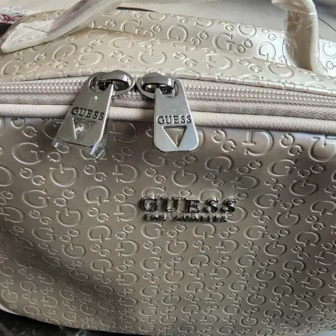 Nueva y original!!Pregunta por disponibilidad.Cosmetiquera marca Guess.El color es como perla.
