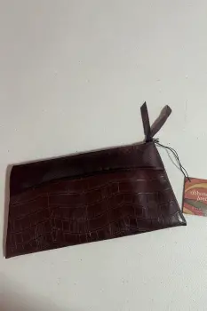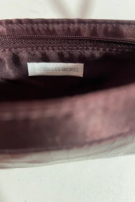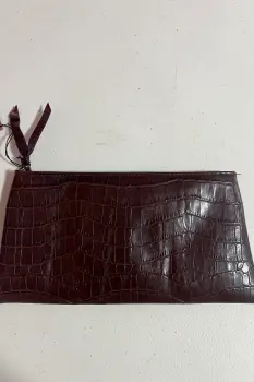 Cosmetiquera nueva de color vino con imitacion piel de cocodrilo, Medidas de 23 x 11 cm.