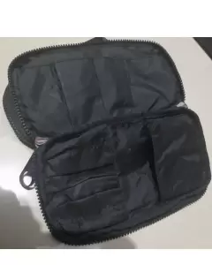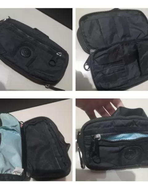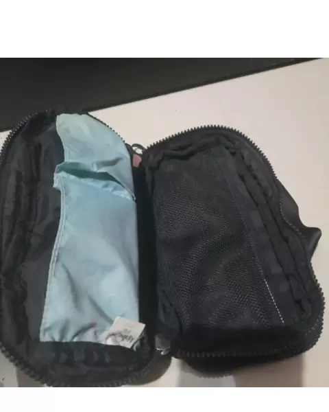 Preciosa y super útil cosmetiquera kipling. Color negro. Sin detalles. Esta excelente estado. Tiene dos compartimentos y aparte un cierre exterior. Ligera pero con mucho espacio de guardado y edpscio pars mantener ordenadas tus cosas.