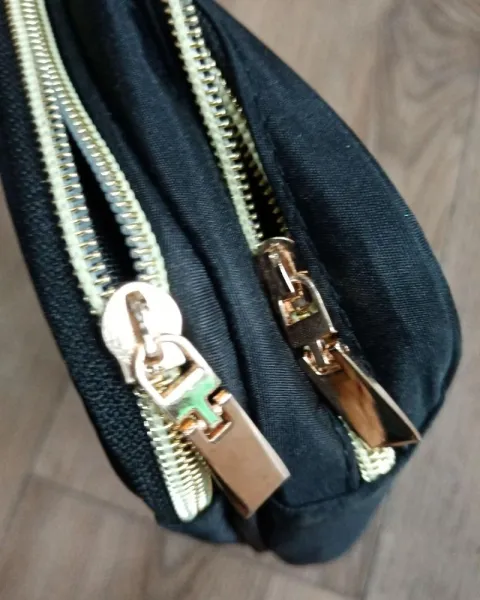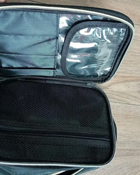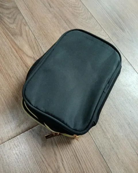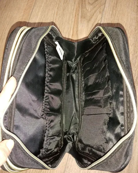 Cosmetiquera con dos compartimentos, ideal para organizar diferentes productos.