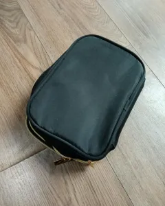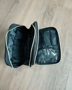 Cosmetiquera negra. Cosmetiquera con dos compartimentos, ideal para organizar diferentes productos.