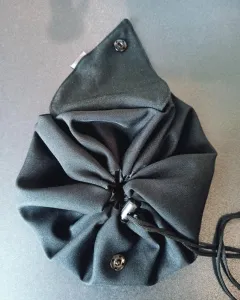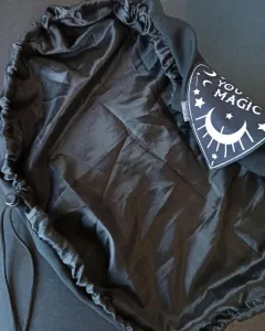 Cosmetiquera circular tipo morral, cierra con jareta y botón a presión. Mide 50 cm de diámetro abierta. Súper práctica y funcional.