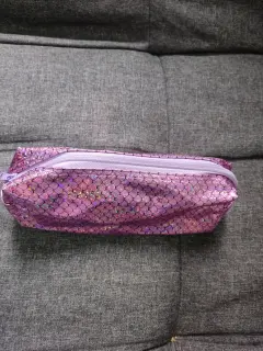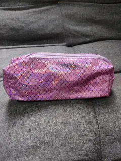 Cosmetiquera Rosa de color tornasol con figura de cola de sirena se puede usar como cosmetiquera o estuchera es de plástico y tiene unas medidas de 22 cm de largo aproximadamente con 10 cm de alto aproximadamente con un fondo de 6 cm aproximadamente