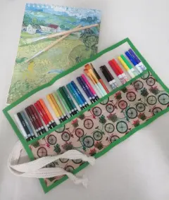 Lapicera enrrollable. Bonita lapicera de lino.Con capacidad de hasta 36 lápices de madera, puedes colocar plumones, pinceles, plumas.Material lino grueso.