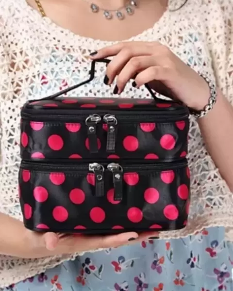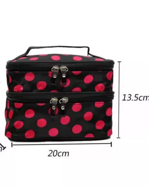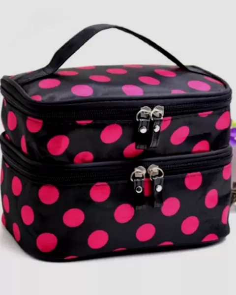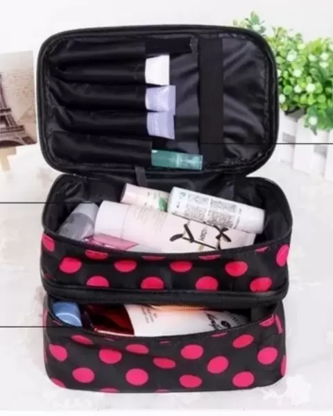 Neceser dots. Neceser Dots* Con dos compartimentos* Zipers para ajuste* Tiene pequeño espejo redondo* Tiene clips para poner botellas de viaje* A estrenar