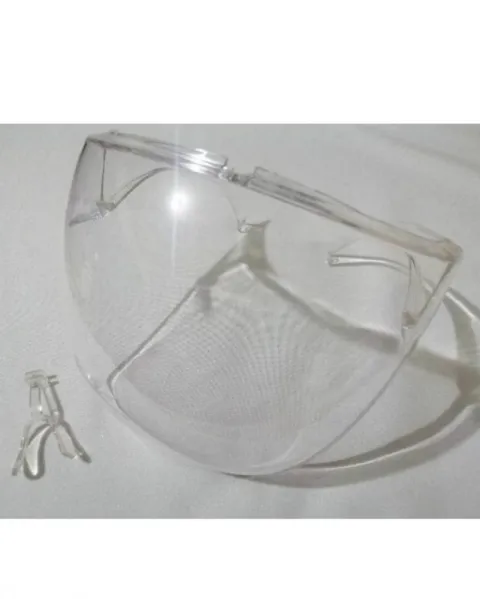 Caretas de protección policarbonato. Caretas de protección de policarbonato con soporte de lentes. El puente de nariz se puede quitar para usar con lentes. Disponible en color transparente. 2 piezas por $300