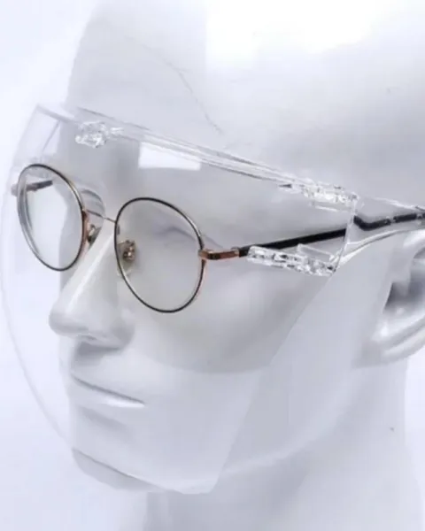 Caretas de protección de policarbonato con soporte de lentes. El puente de nariz se puede quitar para usar con lentes. Disponible en color transparente. 2 piezas por $300