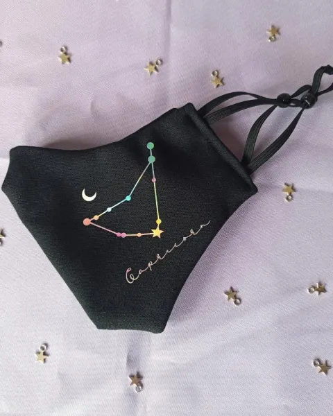 🌙 Cubrebocas con aplicación personalizada holográfica. Textil lavable, triple capa, con cuentas deslizables para ajuste perfecto. Una vez que hagas la compra, déjame un mensajito con la constelación de tu preferencia 👇